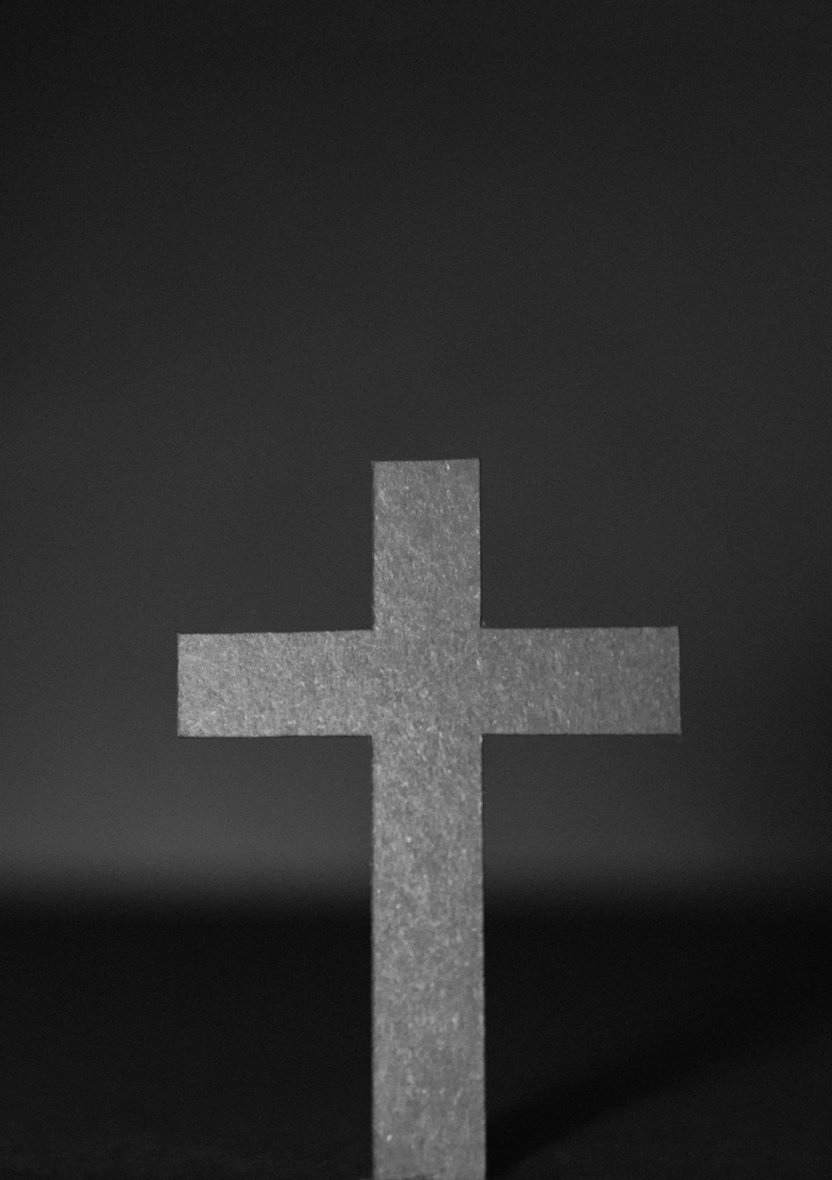 At the center of the room stood a white, ten-foot-tall cross.